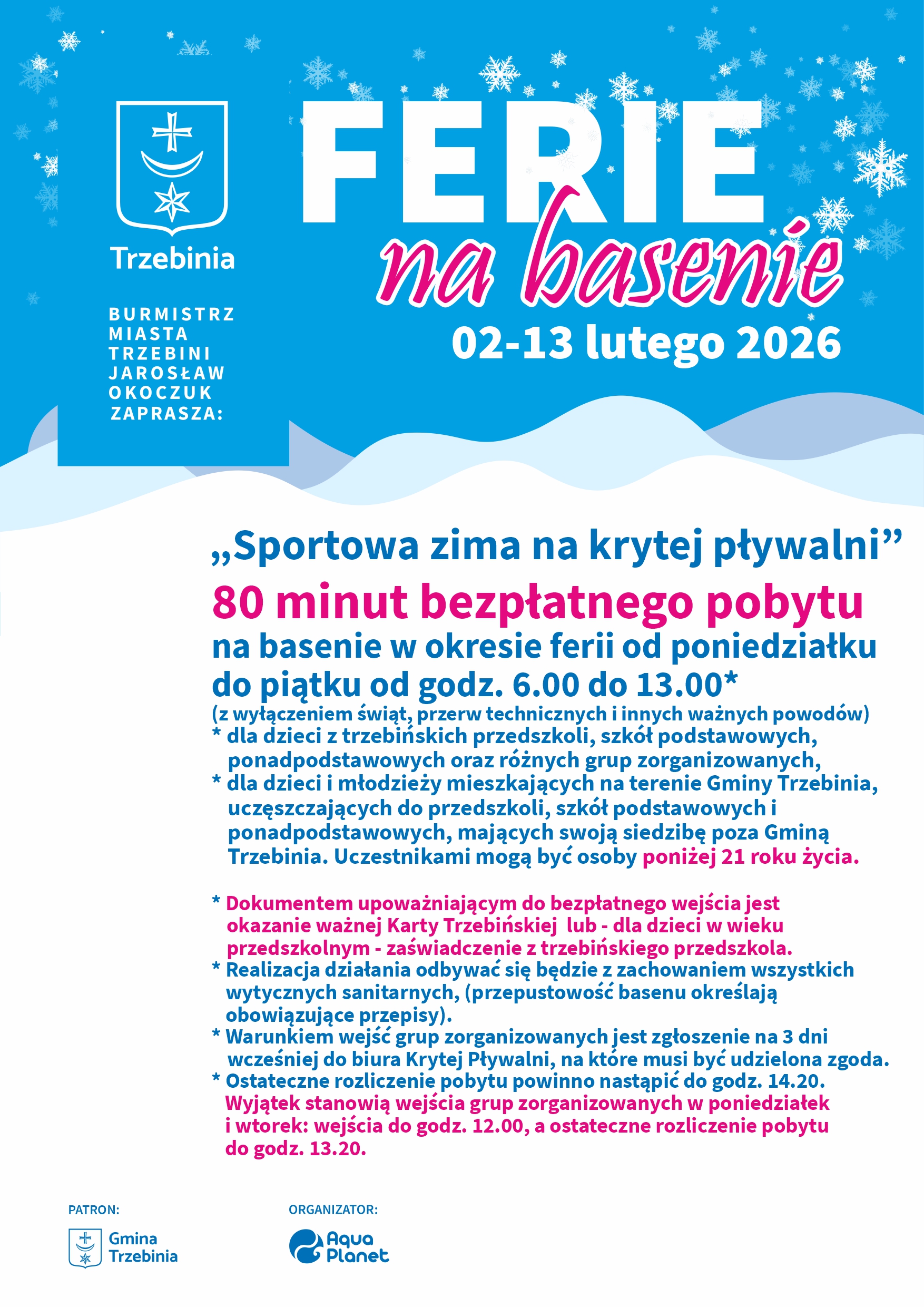 Zachęcamy do skorzystania z programu “Sportowa zima na krytej pływalni”!